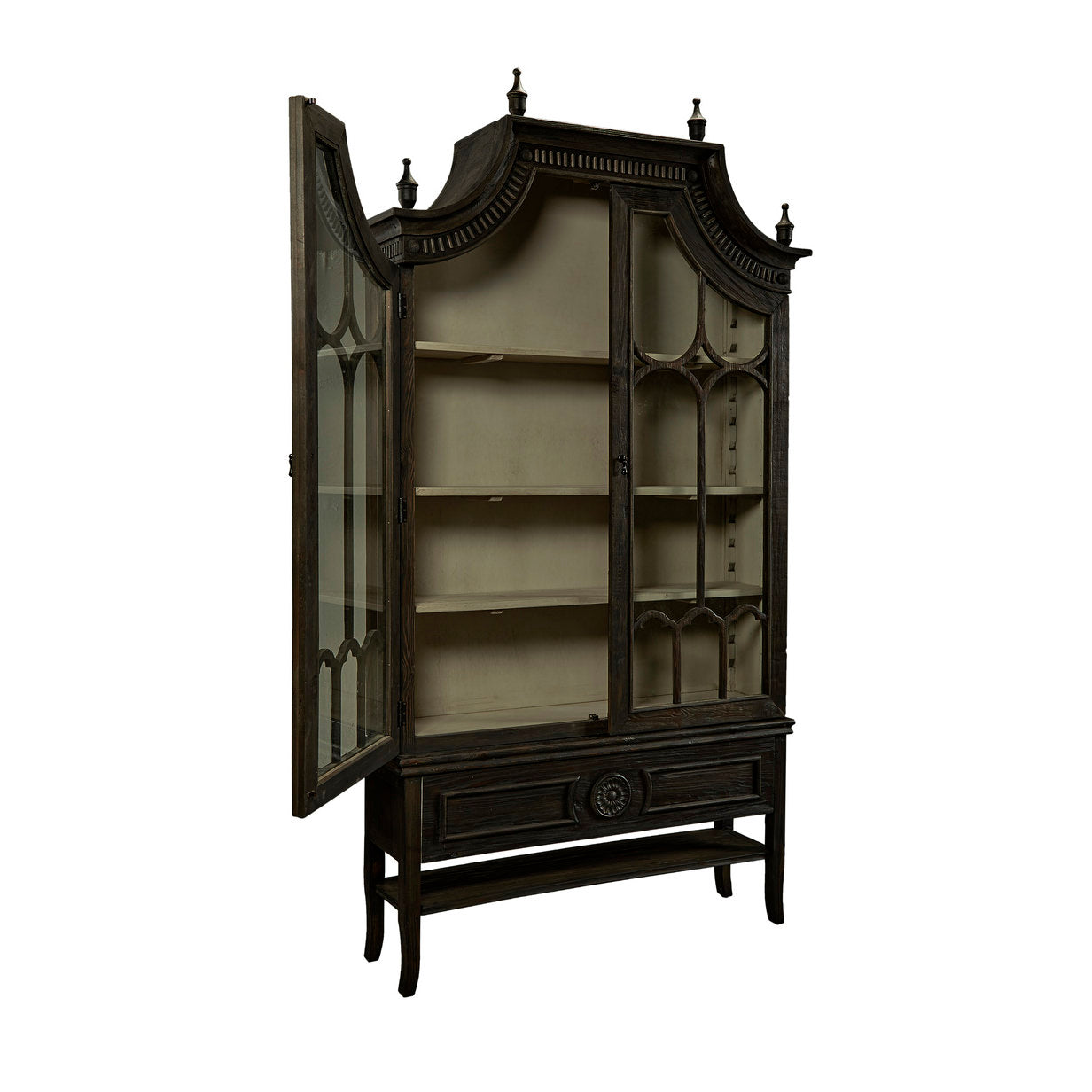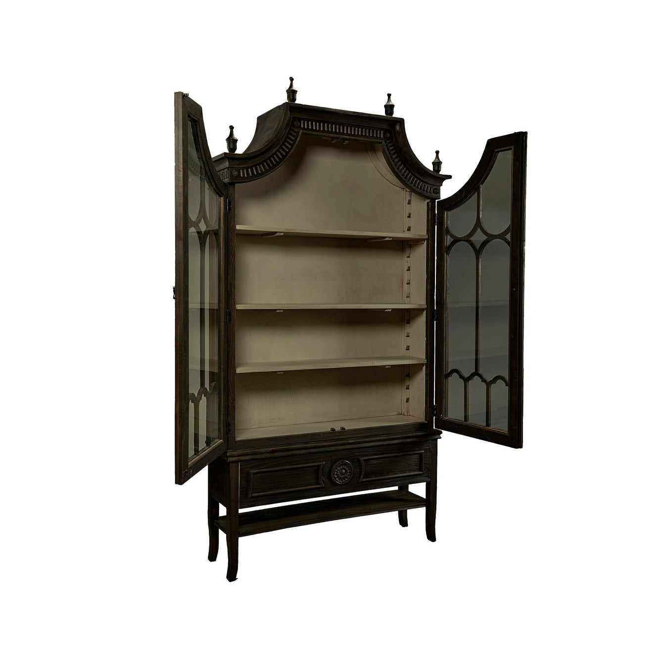 The Camilla Cathedral Display Cabinet offers unexpectedly detailed craftsmanship and a trend-defying design. Intricately designed cathedral-style glass doors make a beautiful and timeless statement. Inside, fully adjustable shelves with plate grooves offer ample space to display your prized possessions, and a cleverly hidden drawer beneath the apron adds a practical storage solution. The deep charcoal and brown finish provides warmth and character.�