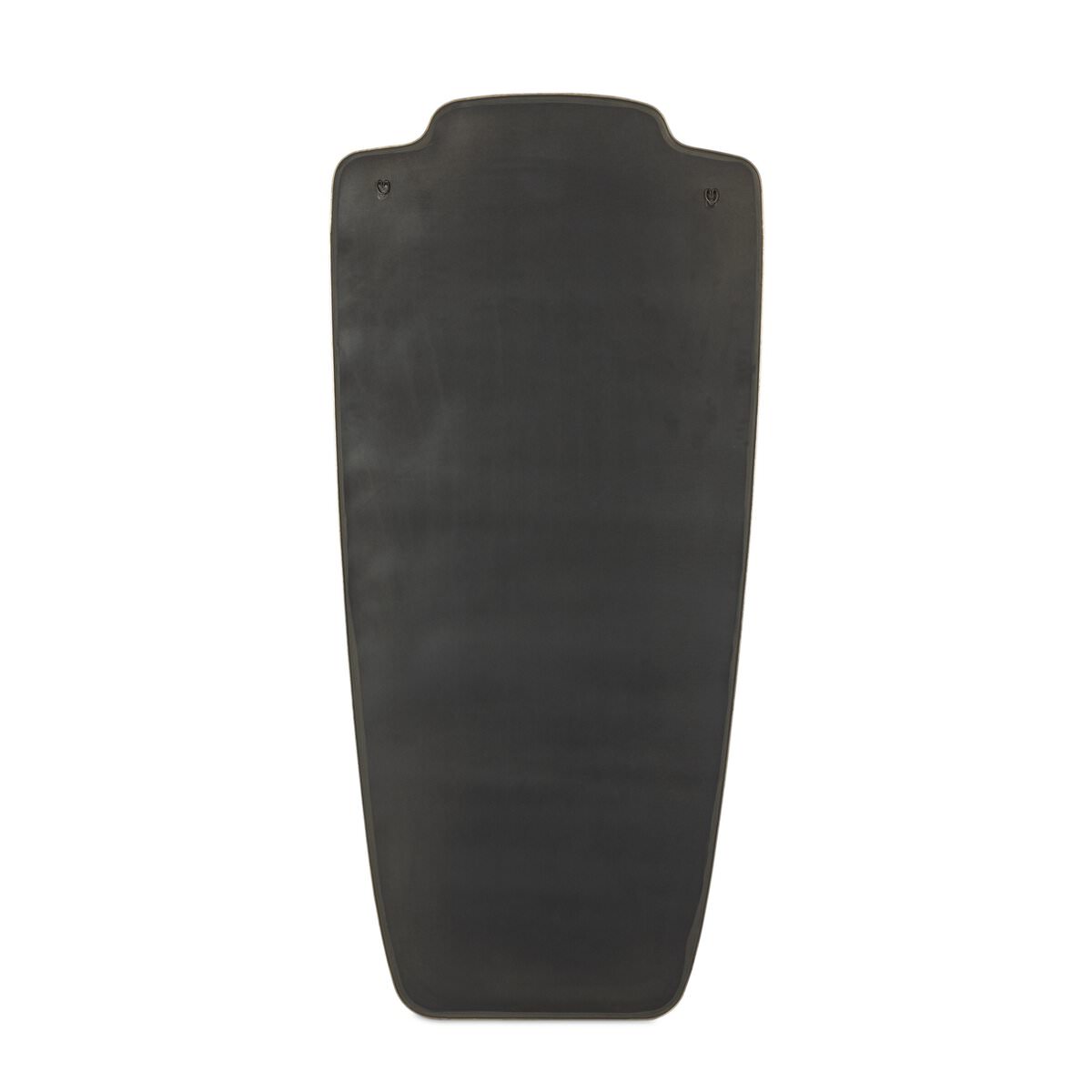 Bring an Art Deco look to your space with an oversized mirror inspired by the shape of shields. An iron frame that slightly tapers at the bottom is finished in an antique brass, elevating any room, from bedroom to entryway.
