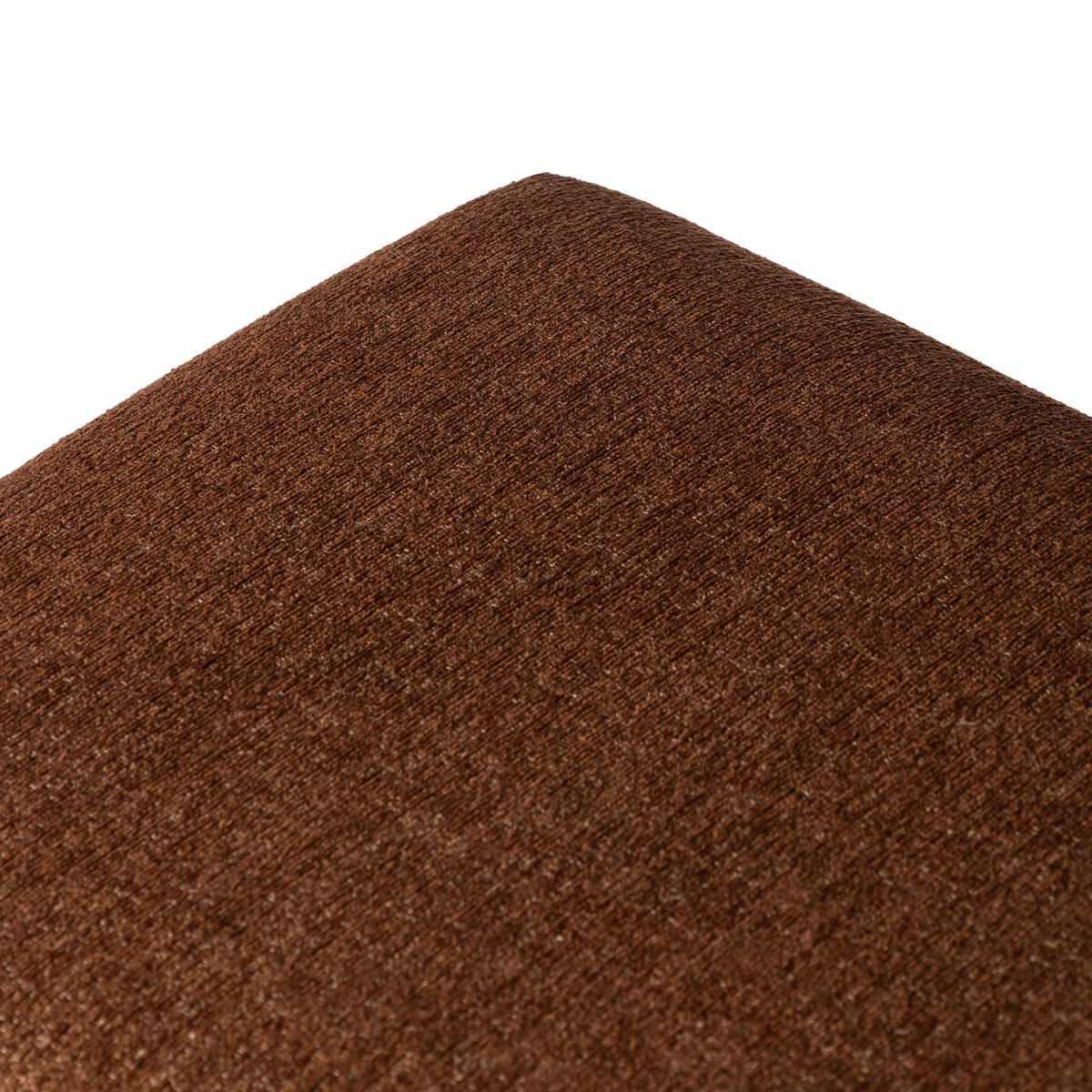 Channel Art Deco with a curved stretcher base of bronzed hammered iron and a velvety seat in a versatile earth tone. Style just about anywhere to create an extra surface or seat. Free of PFAS, soft and easy to clean, Crypton® performance fabric is specially engineered for protection against stains, moisture and odor.